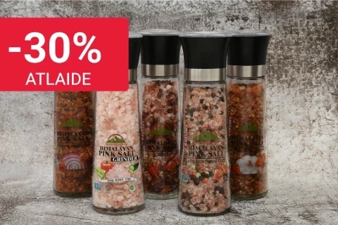Veselīgais Himalaju rozā sāls, kristalizēts jūras sāls kā arī īpaši sāls maisījumi
